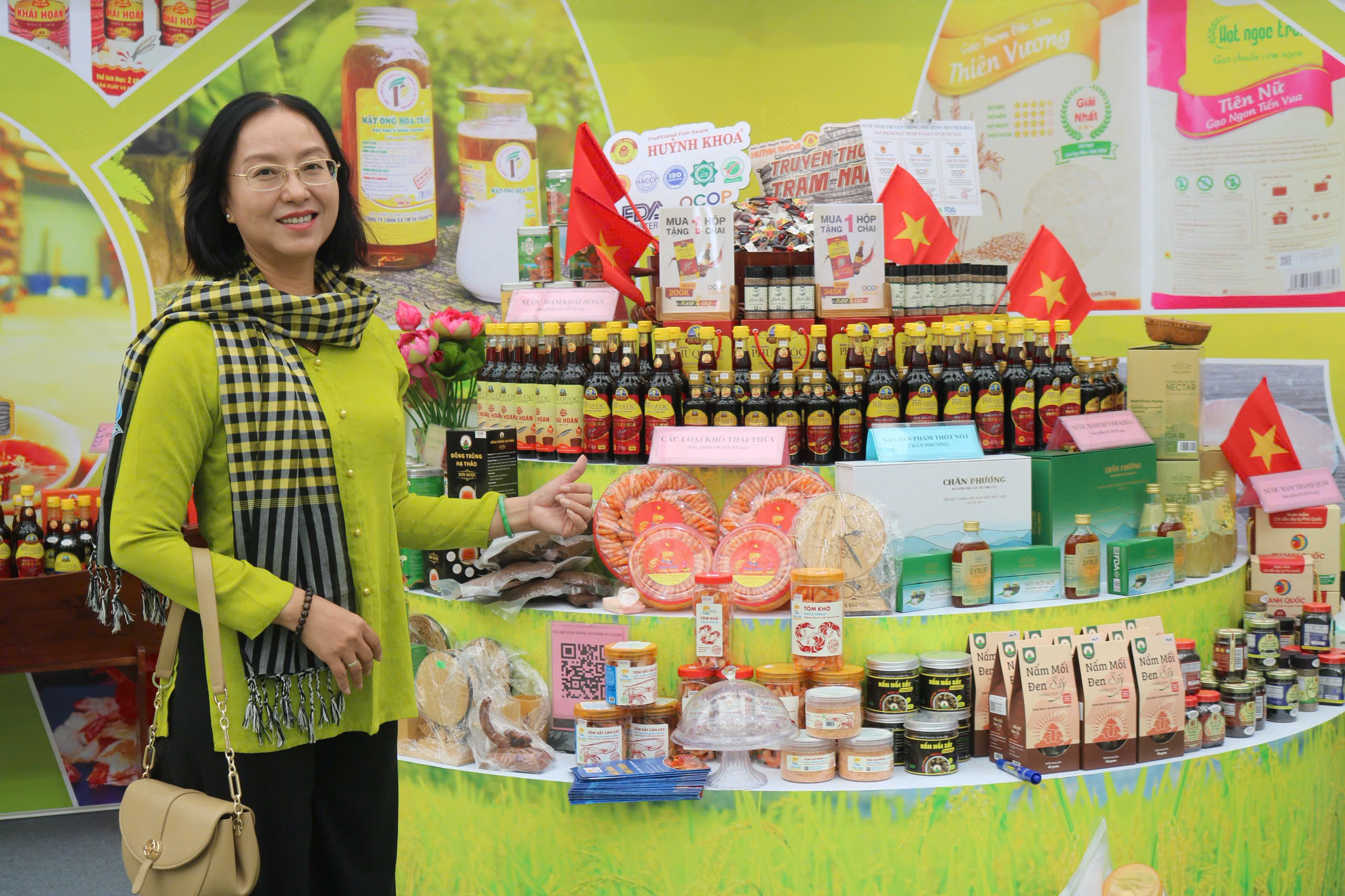 Các sản phẩm OCOPP của thương hiệu hải sản Thái Thủy, tỉnh An Giang trưng bày tại hội chợ mùa Thu thu hút đông đảo du khách
